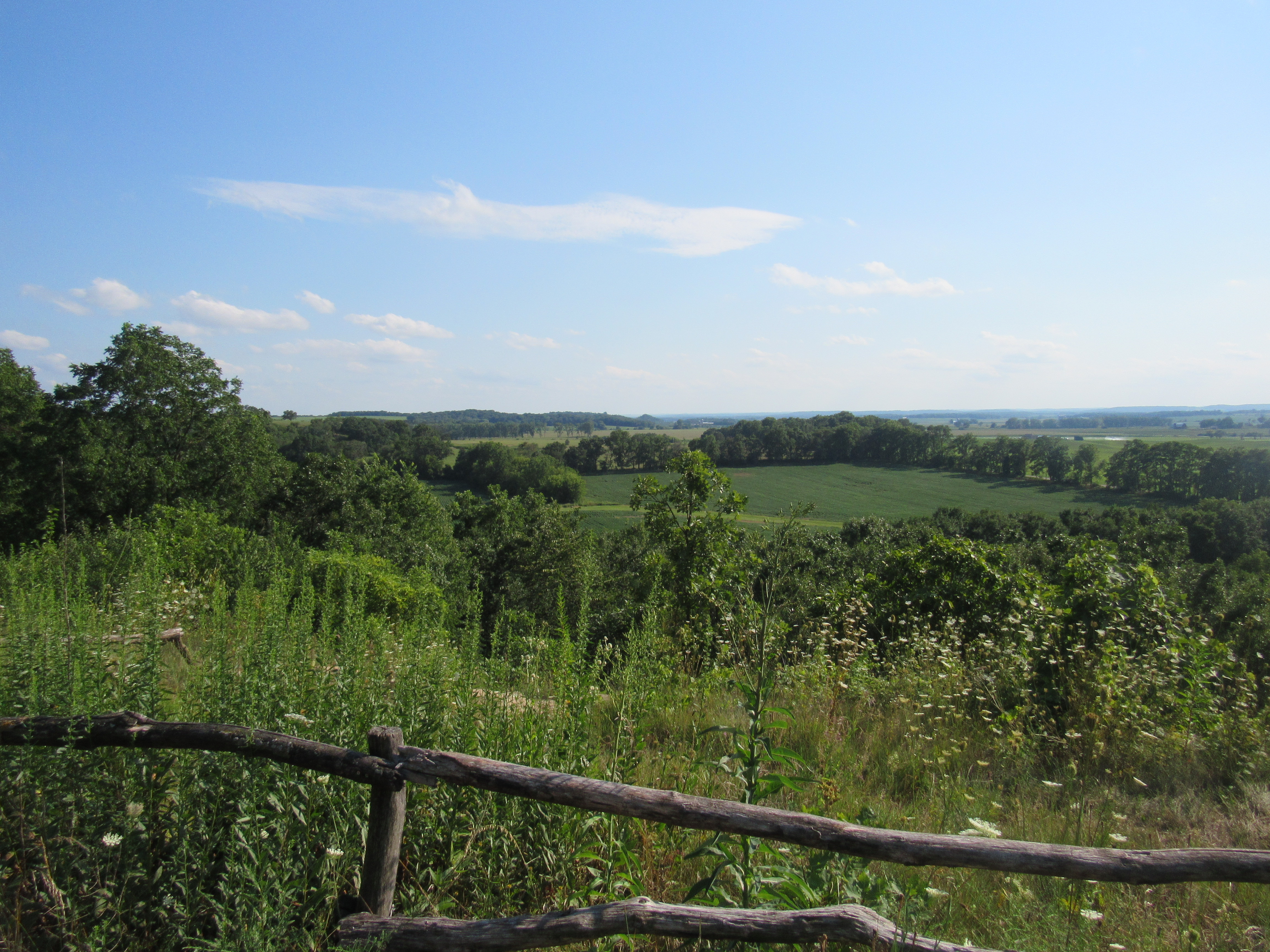 Today Travalon and I went back to Brodhead to explore the other side of Pearl Island. First we stopped for lunch in Oregon at a little local restaurant, and Travalon thought there was a park with a bridge over a creek nearby. We passed a little bridge, but there was no obvious path to get to it, so it seemed sort of pointless. Then we passed another bridge, but there was no shade whatsoever, and it was very hot. We ended up going for a walk in a shady park on the south end of town, and then we realized we may have parked in front of the house of a couple who used to go to our church, but we really haven't seen them in a long time. We weren't quite sure...